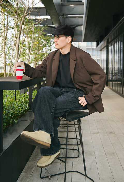 休日のカフェ時間や家族とのお出かけ、公園で過ごすリラックスしたひとときにも自然と馴染むスタイル。気を抜きすぎず、ジャケットをラフに取り入れることで、大人らしい抜け感のある着こなしに仕上がります。